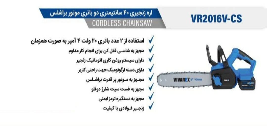 اره زنجیری شارژی 40 سانت براشلس دو باتری ویوارکس VR2016V-CS