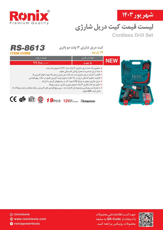 حداکثر قطر سوراخکاری در چوب، فلز، مصالح: آهن ۱۰میل چوب۲۰میل