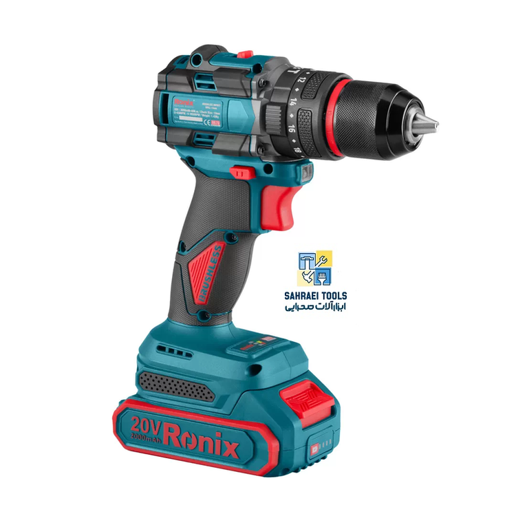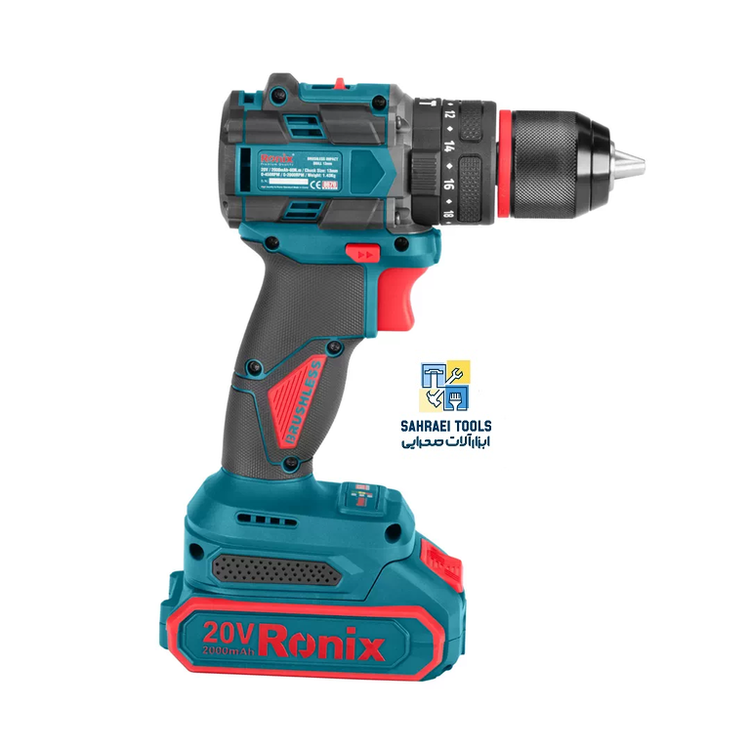 دریل شارژی براش لس 20 ولت چکشی 13 میلی متری 60 نیوتن متر رونیکس 8670
