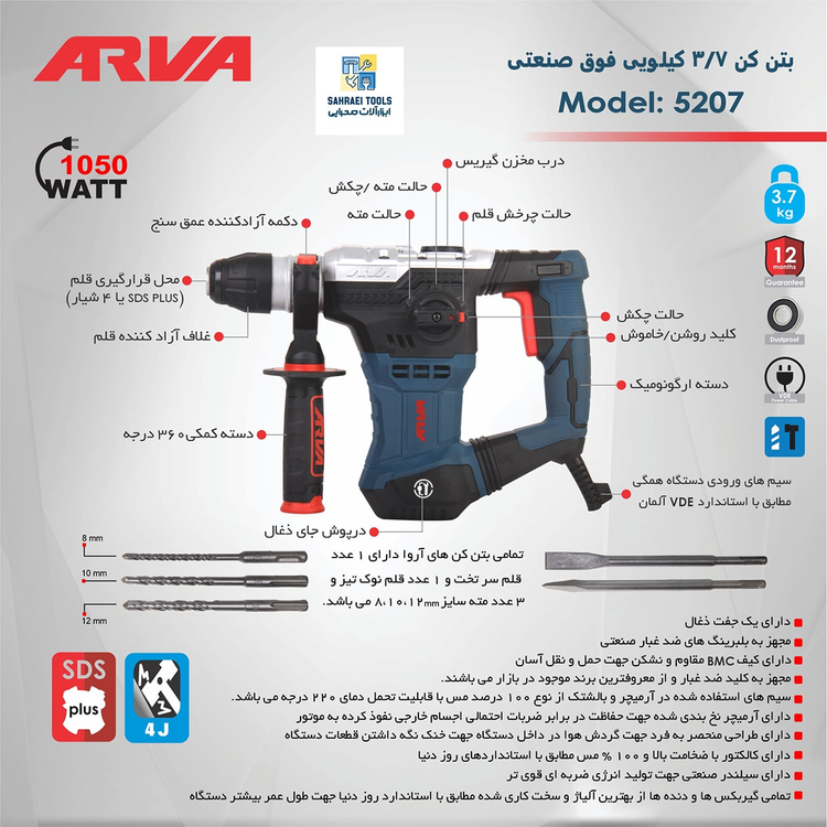 سرعت ضربه: ۴4۰۰ ضربه بر دقیقه