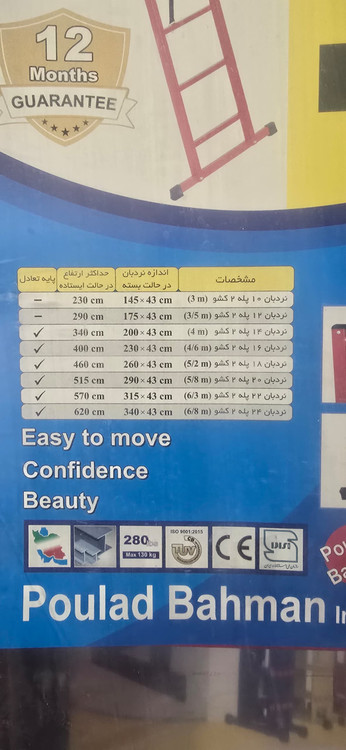 ابعاد نردبان درحالت بسته(cm): 8*45*290