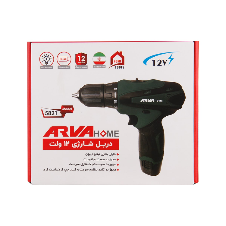 دریل پیچ گوشتی شارژی خانگی ۱۲ ولت آروا مدل ۵۸۲۱