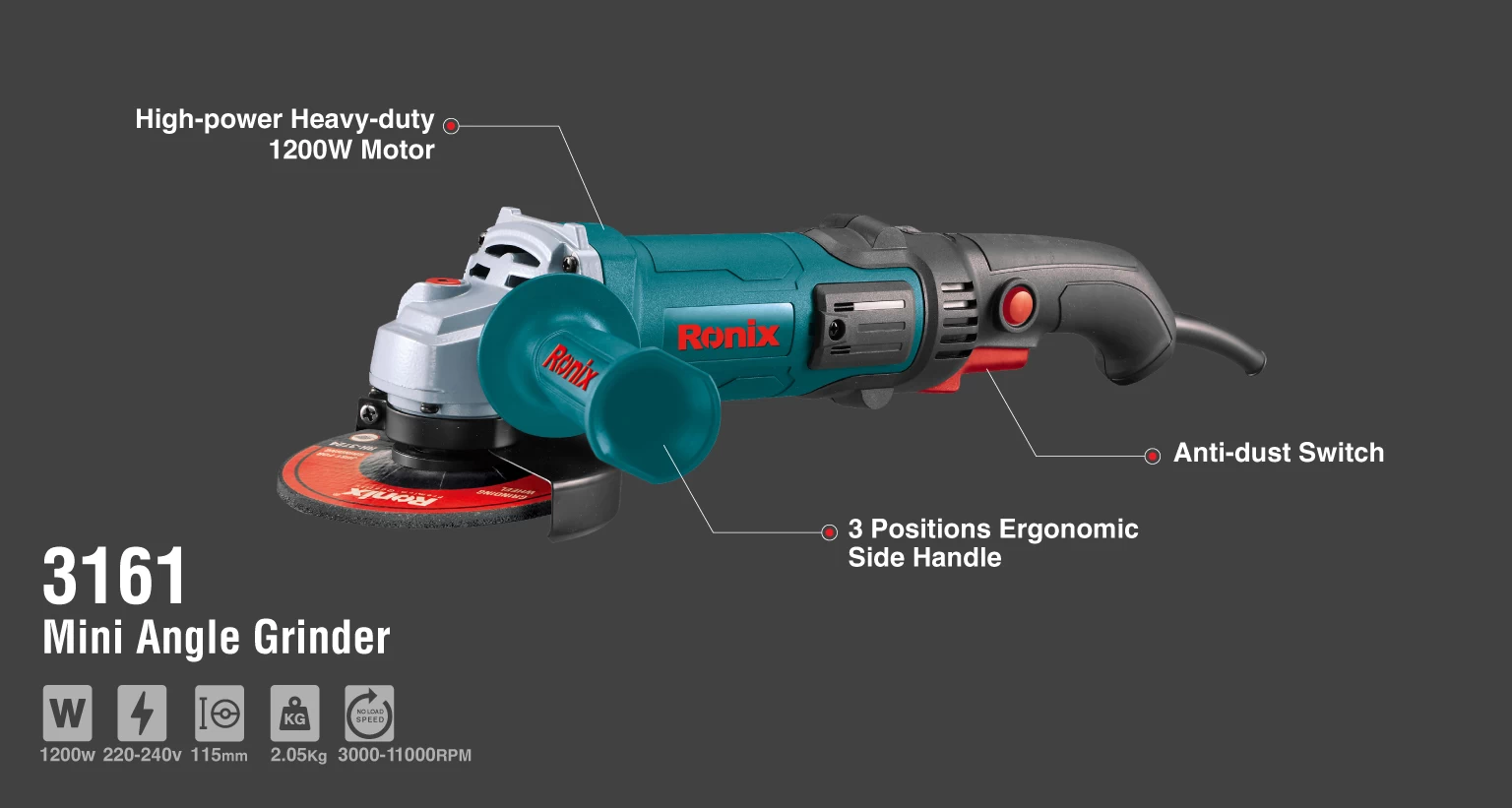 مینی فرز برقی دسته بلند دیمردار 1200 وات رونیکس 3161