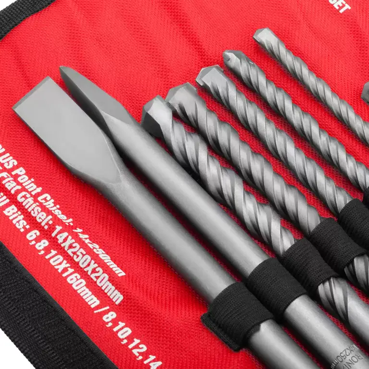 مته چهارشیار :6,8,10×160میلی متر 8,10,12,14,16×210میلی متر قلم نوک تیز :14×250میلی متر قلم تخت :14×250×20میلی متر |