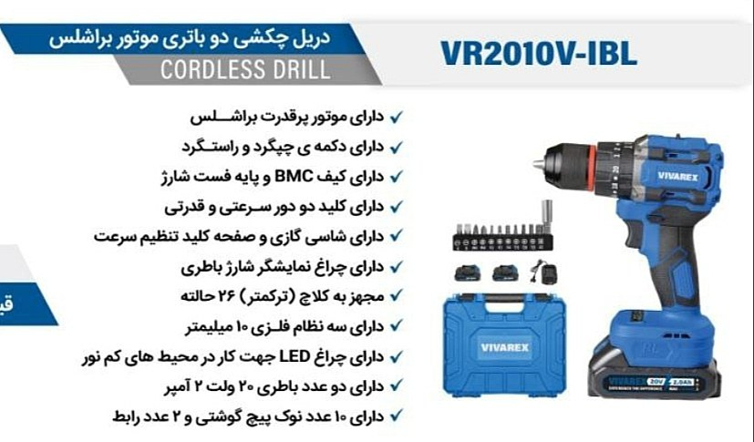 دریل چکشی دو باتری موتور براشلس ویوارکس VR2010V-IBL